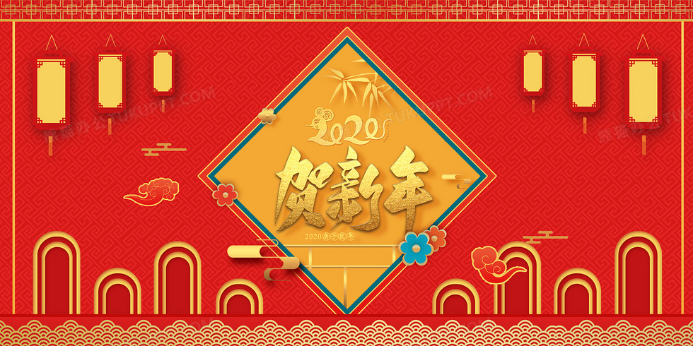 本作品内容为中国风新年灯笼喜庆大气新年鼠年背景, 格式为 psd, 大小48 MB, 图片尺寸为4724 x 2362, 作品中背景图片无需修改, 源文件无水印,可以直接使用, 欢迎使用熊猫办公。 如认为平台内容涉嫌侵权,可通过邮件:tousu@tukuppt.com提出书面通知,我们将及时处理。