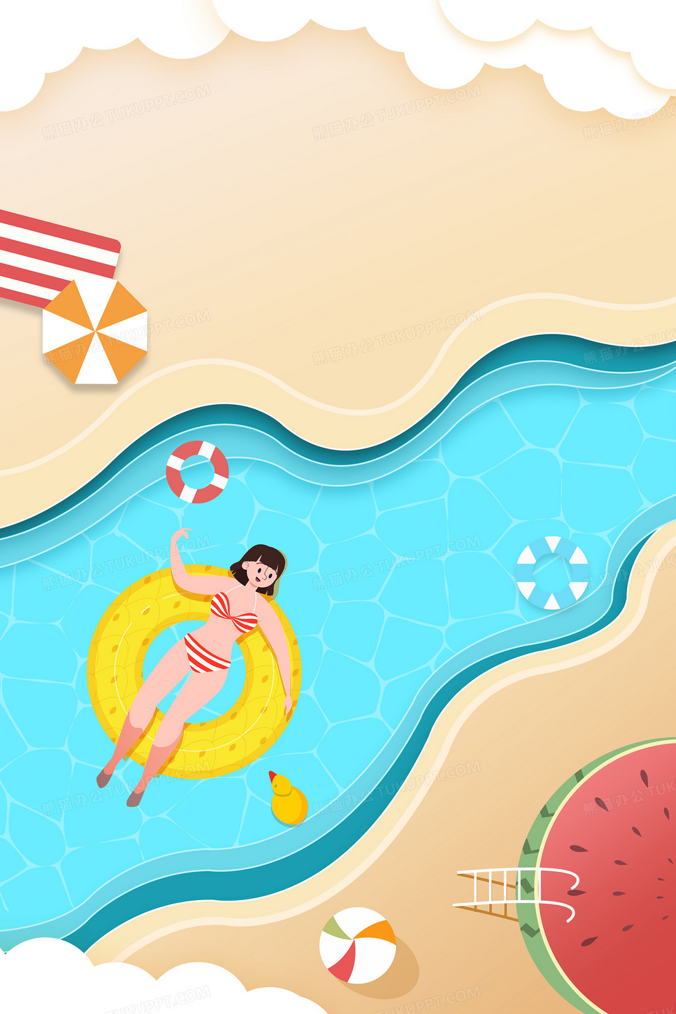 本作品内容为炎热夏天沙滩游泳清凉创意背景, 格式为 psd, 大小24 MB, 图片尺寸为3543 x 5315, 作品中背景图片无需修改, 源文件无水印,可以直接使用, 欢迎使用熊猫办公。 如认为平台内容涉嫌侵权,可通过邮件:tousu@tukuppt.com提出书面通知,我们将及时处理。