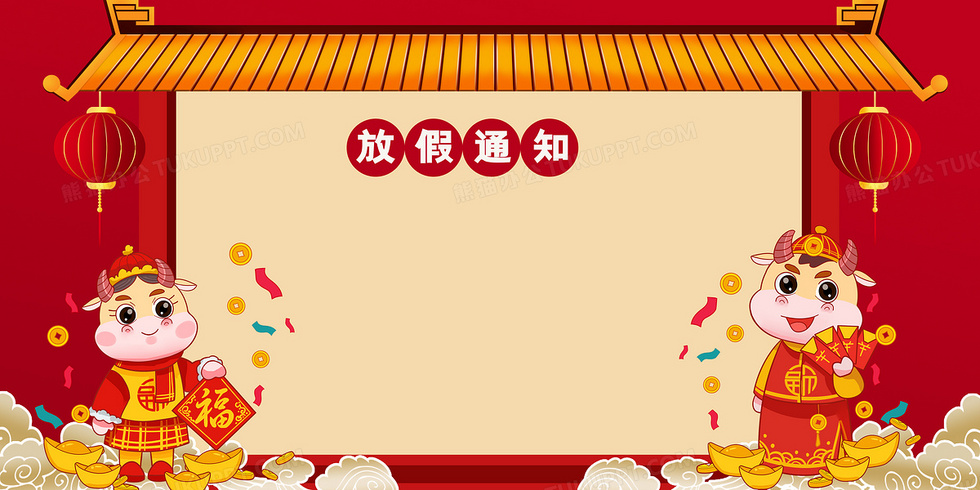 本作品内容为红色喜庆新年元旦放假通知背景设计, 格式为 psd, 大小20 MB, 图片尺寸为4724 x 2362, 作品中背景图片无需修改, 源文件无水印,可以直接使用, 欢迎使用熊猫办公。 如认为平台内容涉嫌侵权,可通过邮件:tousu@tukuppt.com提出书面通知,我们将及时处理。