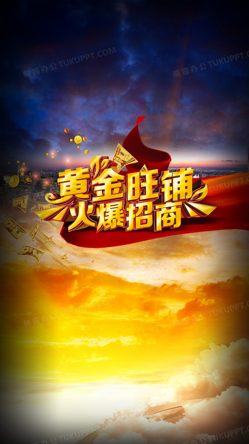 本作品内容为金色黄金旺铺招商商业H5背景素材, 格式为 psd, 图片尺寸为1080 x 1920, 作品中背景图片无需修改, 源文件无水印,可以直接使用, 欢迎使用熊猫办公。 如认为平台内容涉嫌侵权,可通过邮件:tousu@tukuppt.com提出书面通知,我们将及时处理。