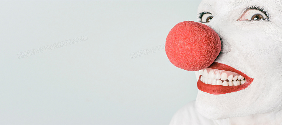 本作品内容为红鼻子瞪眼的小丑, 格式为 jpg, 图片尺寸为1920 x 850, 作品中背景图片无需修改, 源文件无水印,可以直接使用, 欢迎使用熊猫办公。 如认为平台内容涉嫌侵权,可通过邮件:tousu@tukuppt.com提出书面通知,我们将及时处理。