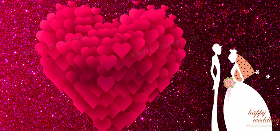 本作品内容为人物剪影婚礼梦幻红色banner背景, 格式为 psd, 图片尺寸为1920 x 900, 作品中背景图片无需修改, 源文件无水印,可以直接使用, 欢迎使用熊猫办公。 如认为平台内容涉嫌侵权,可通过邮件:tousu@tukuppt.com提出书面通知,我们将及时处理。