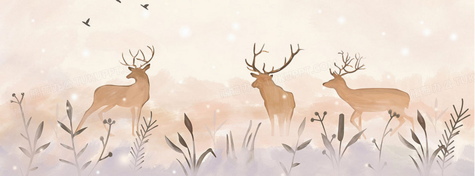 本作品内容为手绘北欧复古麋鹿背景墙装饰画, 格式为 jpg, 图片尺寸为1920 x 711, 作品中背景图片无需修改, 源文件无水印,可以直接使用, 欢迎使用熊猫办公。 如认为平台内容涉嫌侵权,可通过邮件:tousu@tukuppt.com提出书面通知,我们将及时处理。