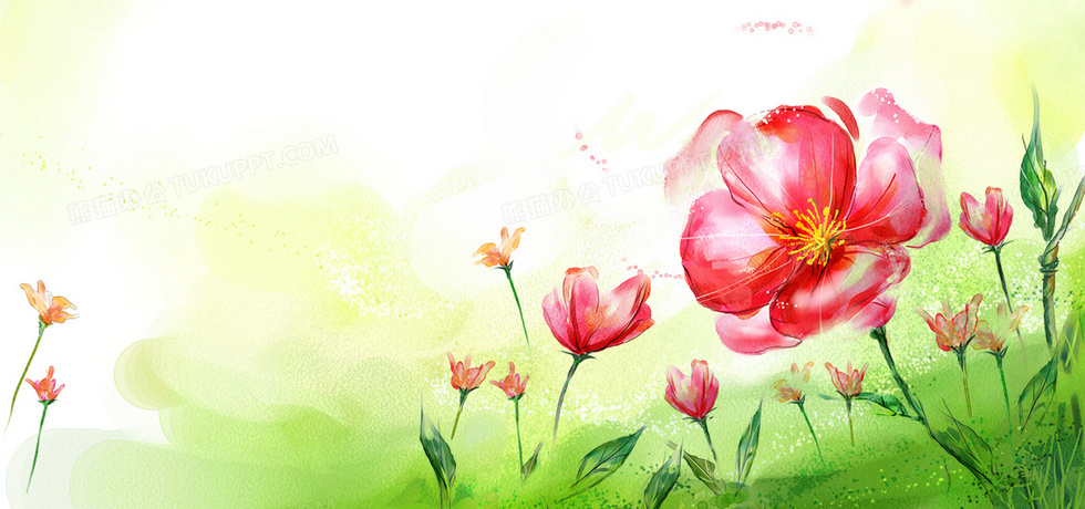 本作品内容为手绘娇艳花朵背景, 格式为 psd, 图片尺寸为1920 x 900, 作品中背景图片无需修改, 源文件无水印,可以直接使用, 欢迎使用熊猫办公。 如认为平台内容涉嫌侵权,可通过邮件:tousu@tukuppt.com提出书面通知,我们将及时处理。
