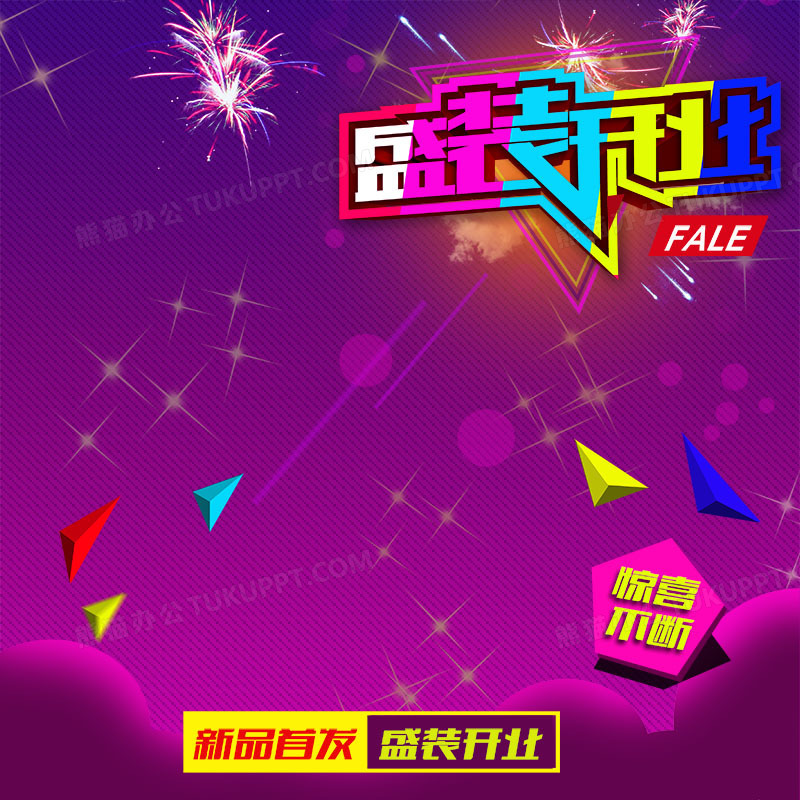 本作品内容为紫色炫彩开业狂欢背景, 格式为 psd, 图片尺寸为800 x 800, 作品中背景图片无需修改, 源文件无水印,可以直接使用, 欢迎使用熊猫办公。 如认为平台内容涉嫌侵权,可通过邮件:tousu@tukuppt.com提出书面通知,我们将及时处理。