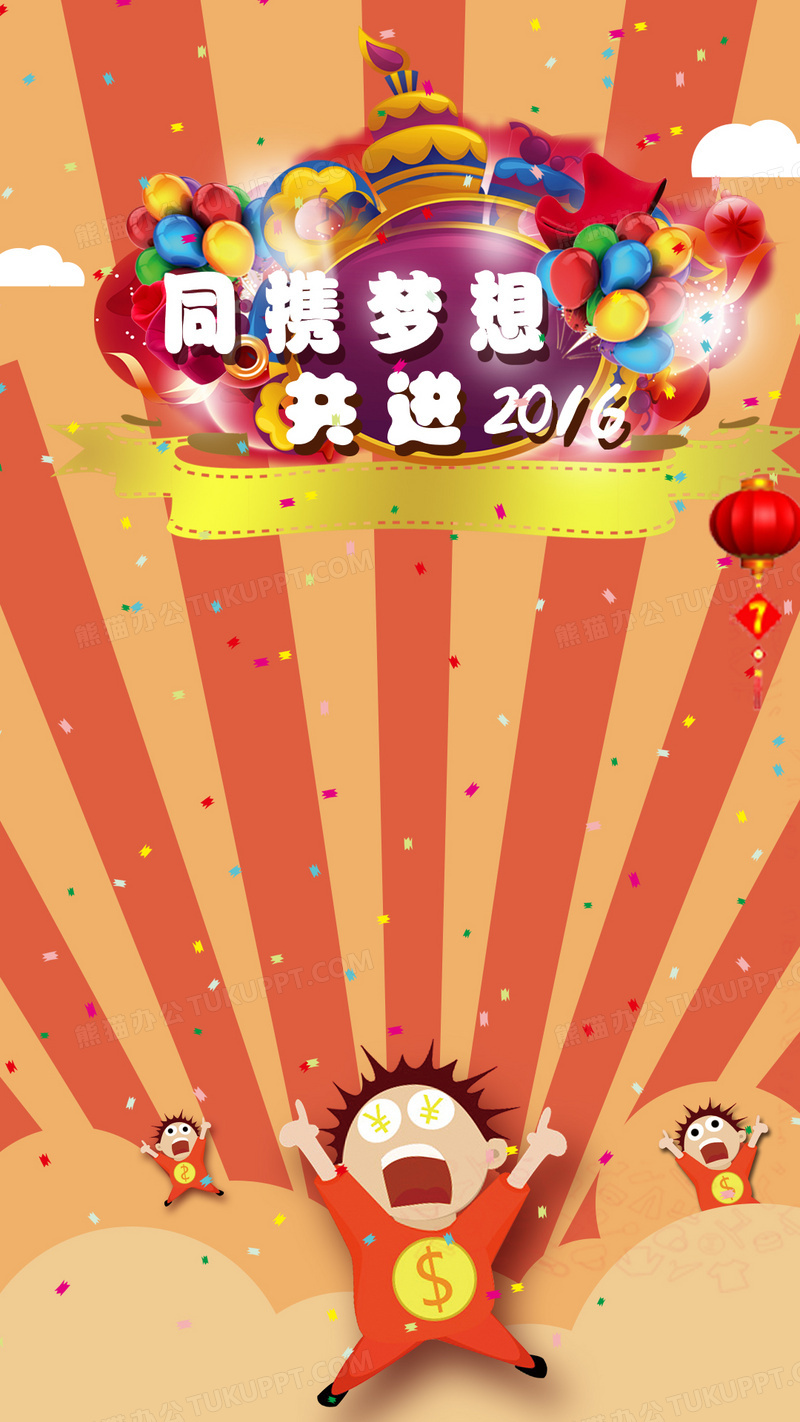 本作品内容为奋进2016欢乐活动背景, 格式为 psd, 图片尺寸为1080 x 1920, 作品中背景图片无需修改, 源文件无水印,可以直接使用, 欢迎使用熊猫办公。 如认为平台内容涉嫌侵权,可通过邮件:tousu@tukuppt.com提出书面通知,我们将及时处理。