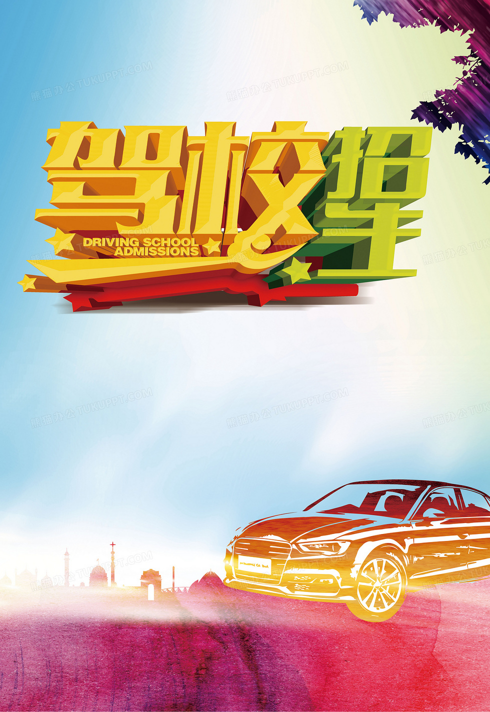 本作品内容为驾校招生背景, 格式为 psd, 图片尺寸为4606 x 6693, 作品中背景图片无需修改, 源文件无水印,可以直接使用, 欢迎使用熊猫办公。 如认为平台内容涉嫌侵权,可通过邮件:tousu@tukuppt.com提出书面通知,我们将及时处理。