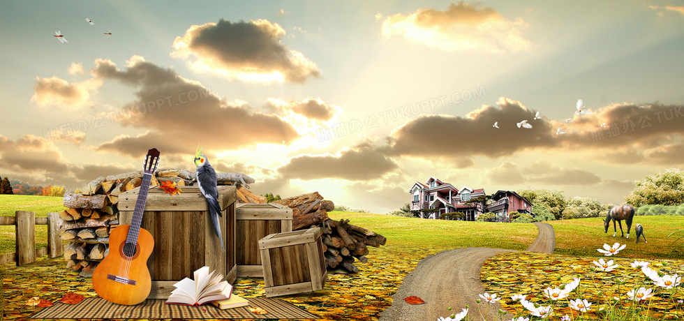 本作品内容为吉他木头牛羊世外桃源别墅海报Banner, 格式为 psd, 图片尺寸为1920 x 900, 作品中背景图片无需修改, 源文件无水印,可以直接使用, 欢迎使用熊猫办公。 如认为平台内容涉嫌侵权,可通过邮件:tousu@tukuppt.com提出书面通知,我们将及时处理。