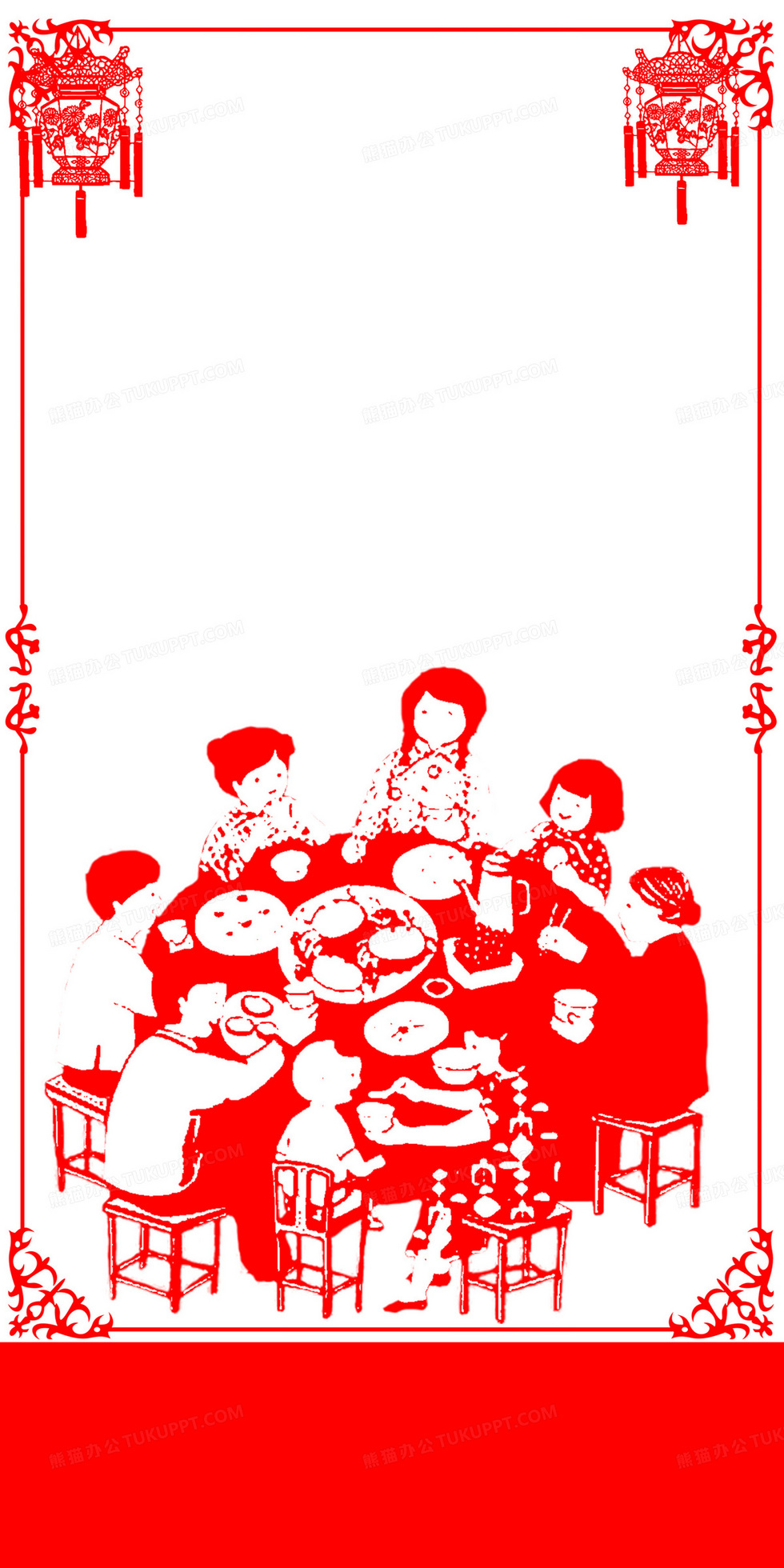本作品内容为剪纸年夜饭海报背景素材, 格式为 psd, 图片尺寸为2000 x 4000, 作品中背景图片无需修改, 源文件无水印,可以直接使用, 欢迎使用熊猫办公。 如认为平台内容涉嫌侵权,可通过邮件:tousu@tukuppt.com提出书面通知,我们将及时处理。