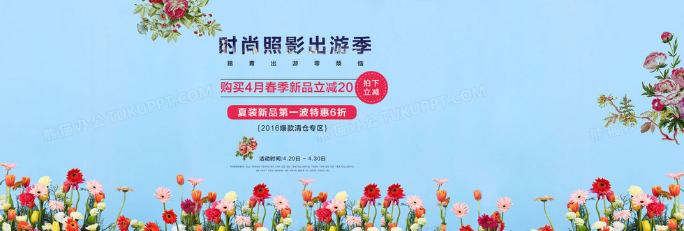 本作品内容为小清新女装服装海报背景素材, 格式为 psd, 图片尺寸为1920 x 650, 作品中背景图片无需修改, 源文件无水印,可以直接使用, 欢迎使用熊猫办公。 如认为平台内容涉嫌侵权,可通过邮件:tousu@tukuppt.com提出书面通知,我们将及时处理。