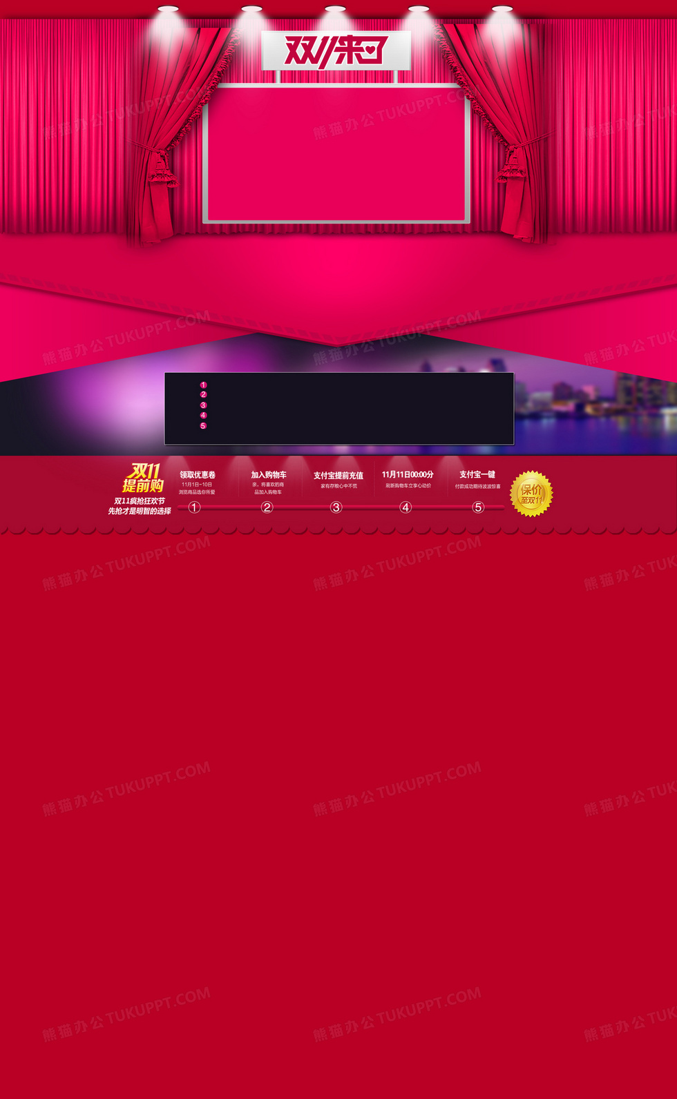本作品内容为双11首页背景, 格式为 psd, 图片尺寸为1920 x 3118, 作品中背景图片无需修改, 源文件无水印,可以直接使用, 欢迎使用熊猫办公。 如认为平台内容涉嫌侵权,可通过邮件:tousu@tukuppt.com提出书面通知,我们将及时处理。