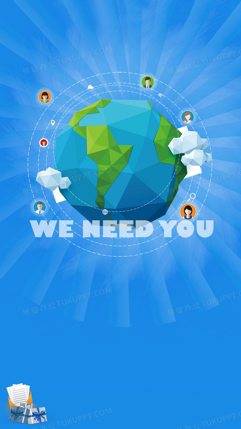 本作品内容为蓝色扁平创意招聘PSD分层H5背景素材, 格式为 psd, 图片尺寸为1080 x 1920, 作品中背景图片无需修改, 源文件无水印,可以直接使用, 欢迎使用熊猫办公。 如认为平台内容涉嫌侵权,可通过邮件:tousu@tukuppt.com提出书面通知,我们将及时处理。
