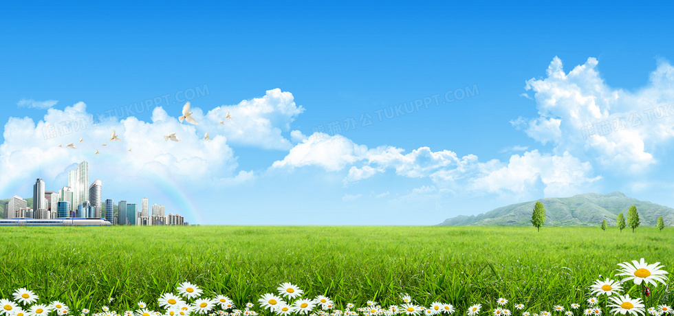 本作品内容为蓝天白云绿色草地向日葵飞鸽房子海报banner, 格式为 psd, 图片尺寸为1920 x 900, 作品中背景图片无需修改, 源文件无水印,可以直接使用, 欢迎使用熊猫办公。 如认为平台内容涉嫌侵权,可通过邮件:tousu@tukuppt.com提出书面通知,我们将及时处理。