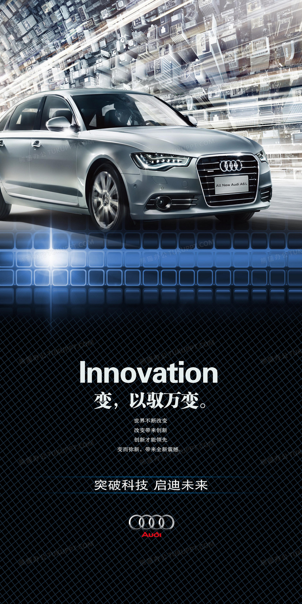 本作品内容为奥迪轿车, 格式为 psd, 图片尺寸为2953 x 5906, 作品中背景图片无需修改, 源文件无水印,可以直接使用, 欢迎使用熊猫办公。 如认为平台内容涉嫌侵权,可通过邮件:tousu@tukuppt.com提出书面通知,我们将及时处理。