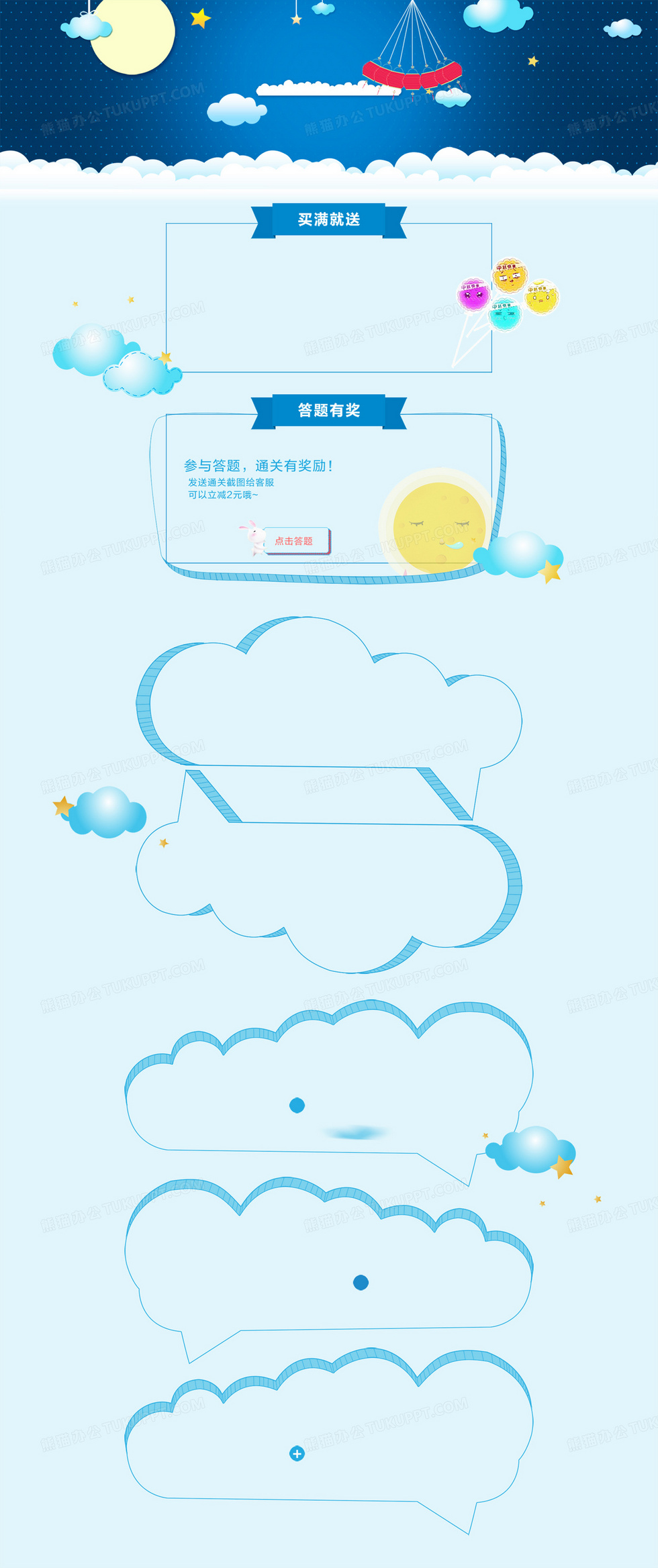 本作品内容为蓝色天空卡通店铺背景, 格式为 psd, 图片尺寸为1920 x 4577, 作品中背景图片无需修改, 源文件无水印,可以直接使用, 欢迎使用熊猫办公。 如认为平台内容涉嫌侵权,可通过邮件:tousu@tukuppt.com提出书面通知,我们将及时处理。