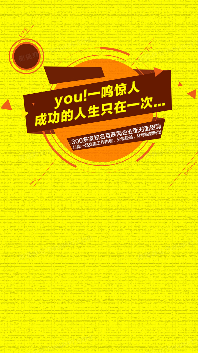 本作品内容为黄色扁平化H5背景, 格式为 psd, 图片尺寸为1080 x 1920, 作品中背景图片无需修改, 源文件无水印,可以直接使用, 欢迎使用熊猫办公。 如认为平台内容涉嫌侵权,可通过邮件:tousu@tukuppt.com提出书面通知,我们将及时处理。