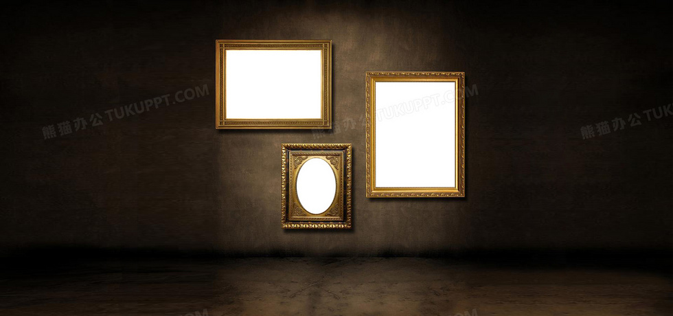 本作品内容为挂在墙上精美欧式古典相框画框背景, 格式为 psd, 图片尺寸为1920 x 900, 作品中背景图片无需修改, 源文件无水印,可以直接使用, 欢迎使用熊猫办公。 如认为平台内容涉嫌侵权,可通过邮件:tousu@tukuppt.com提出书面通知,我们将及时处理。