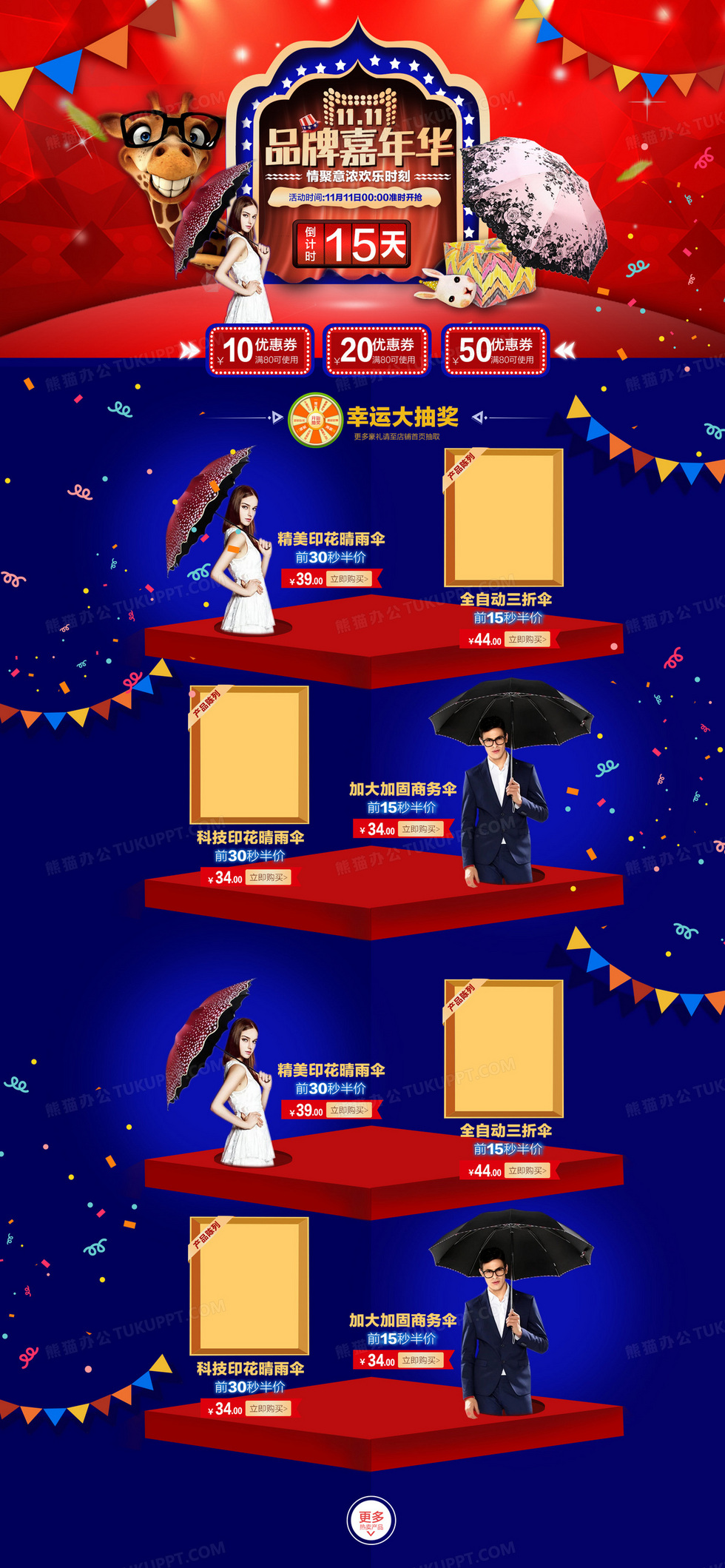 本作品内容为双十一首页背景模板, 格式为 psd, 图片尺寸为1920 x 4150, 作品中背景图片无需修改, 源文件无水印,可以直接使用, 欢迎使用熊猫办公。 如认为平台内容涉嫌侵权,可通过邮件:tousu@tukuppt.com提出书面通知,我们将及时处理。
