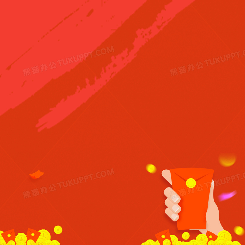 本作品内容为卡通红色喜庆红包金币背景, 格式为 psd, 图片尺寸为800 x 800, 作品中背景图片无需修改, 源文件无水印,可以直接使用, 欢迎使用熊猫办公。 如认为平台内容涉嫌侵权,可通过邮件:tousu@tukuppt.com提出书面通知,我们将及时处理。
