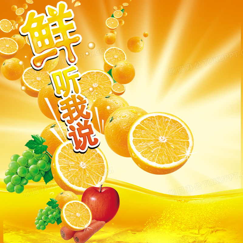 本作品内容为鲜美橙汁饮料背景图, 格式为 psd, 图片尺寸为800 x 800, 作品中背景图片无需修改, 源文件无水印,可以直接使用, 欢迎使用熊猫办公。 如认为平台内容涉嫌侵权,可通过邮件:tousu@tukuppt.com提出书面通知,我们将及时处理。
