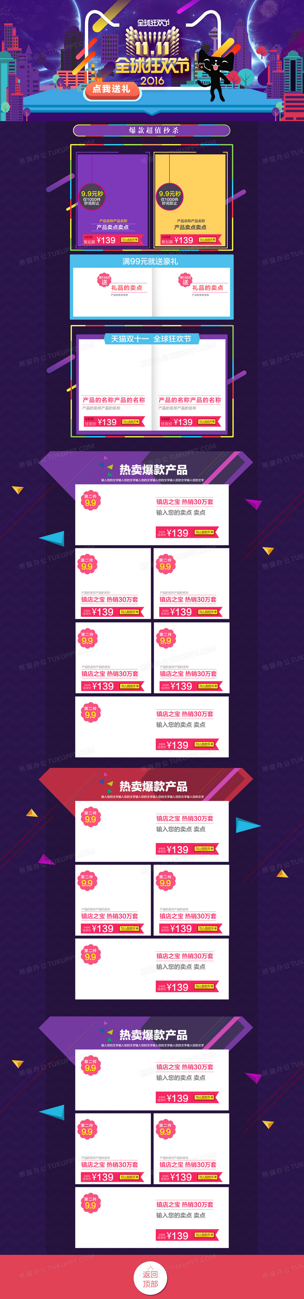本作品内容为双十一首页背景模板, 格式为 psd, 图片尺寸为1920 x 8205, 作品中背景图片无需修改, 源文件无水印,可以直接使用, 欢迎使用熊猫办公。 如认为平台内容涉嫌侵权,可通过邮件:tousu@tukuppt.com提出书面通知,我们将及时处理。