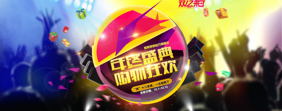 本作品内容为年终盛典购物狂欢创意banner背景, 格式为 psd, 图片尺寸为1920 x 756, 作品中背景图片无需修改, 源文件无水印,可以直接使用, 欢迎使用熊猫办公。 如认为平台内容涉嫌侵权,可通过邮件:tousu@tukuppt.com提出书面通知,我们将及时处理。