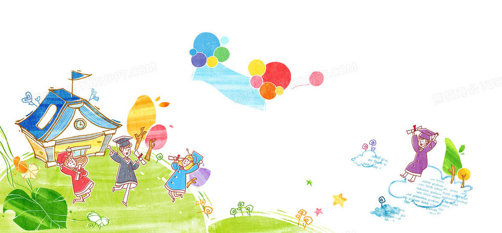 本作品内容为学生毕业生活卡通背景, 格式为 psd, 图片尺寸为1920 x 891, 作品中背景图片无需修改, 源文件无水印,可以直接使用, 欢迎使用熊猫办公。 如认为平台内容涉嫌侵权,可通过邮件:tousu@tukuppt.com提出书面通知,我们将及时处理。