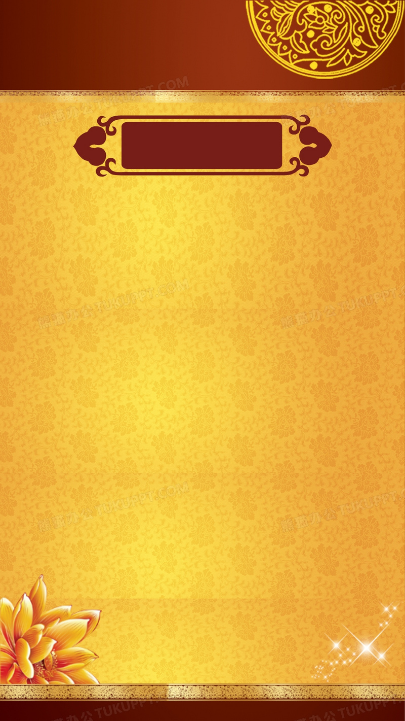 本作品内容为中国风黄底花纹矢量H5背景素材, 格式为 cdr, 图片尺寸为1080 x 1919, 作品中背景图片无需修改, 源文件无水印,可以直接使用, 欢迎使用熊猫办公。 如认为平台内容涉嫌侵权,可通过邮件:tousu@tukuppt.com提出书面通知,我们将及时处理。
