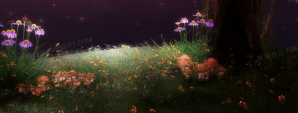 本作品内容为卡通梦幻野菊花蘑菇背景banner, 格式为 psd, 图片尺寸为1920 x 732, 作品中背景图片无需修改, 源文件无水印,可以直接使用, 欢迎使用熊猫办公。 如认为平台内容涉嫌侵权,可通过邮件:tousu@tukuppt.com提出书面通知,我们将及时处理。
