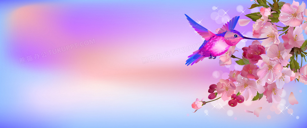 本作品内容为粉红花卉鸟儿背景, 格式为 jpg, 图片尺寸为1921 x 800, 作品中背景图片无需修改, 源文件无水印,可以直接使用, 欢迎使用熊猫办公。 如认为平台内容涉嫌侵权,可通过邮件:tousu@tukuppt.com提出书面通知,我们将及时处理。