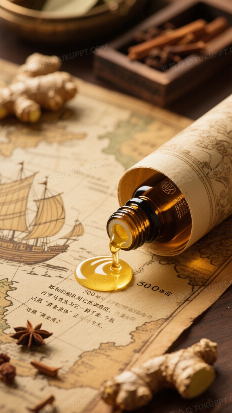 本作品内容为一卷泛黄的古老香料地图缓缓展开, 格式为 jpg, 大小1 MB, 图片尺寸为936 x 1664, 源文件无水印, 欢迎使用熊猫办公。 如认为平台内容涉嫌侵权,可通过邮件:tousu@tukuppt.com提出书面通知,我们将及时处理。