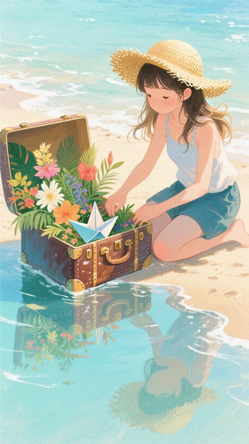本作品内容为手绘水粉质感插画戴草编帽的少女跪坐沙滩开箱整理, 格式为 jpg, 大小1 MB, 图片尺寸为936 x 1664, 源文件无水印, 欢迎使用熊猫办公。 如认为平台内容涉嫌侵权,可通过邮件:tousu@tukuppt.com提出书面通知,我们将及时处理。