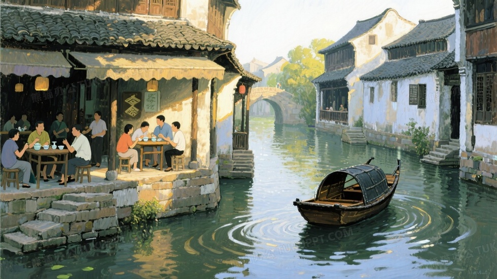 本作品内容为好看的古镇水乡插画临河的茶馆中人们在品茶聊天, 格式为 jpg, 大小1 MB, 图片尺寸为1664 x 936, 源文件无水印, 欢迎使用熊猫办公。 如认为平台内容涉嫌侵权,可通过邮件:tousu@tukuppt.com提出书面通知,我们将及时处理。