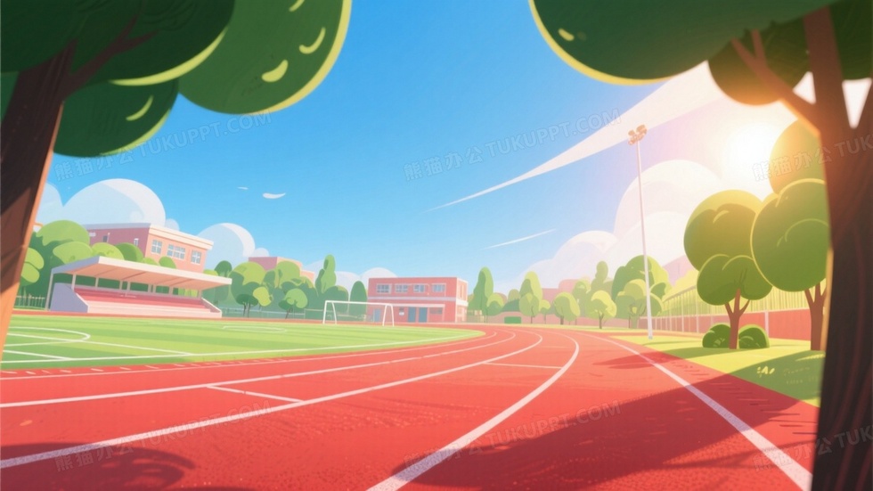 本作品内容为学校操场的卡通插画红色跑道醒目, 格式为 jpg, 大小1 MB, 图片尺寸为1664 x 936, 源文件无水印, 欢迎使用熊猫办公。 如认为平台内容涉嫌侵权,可通过邮件:tousu@tukuppt.com提出书面通知,我们将及时处理。