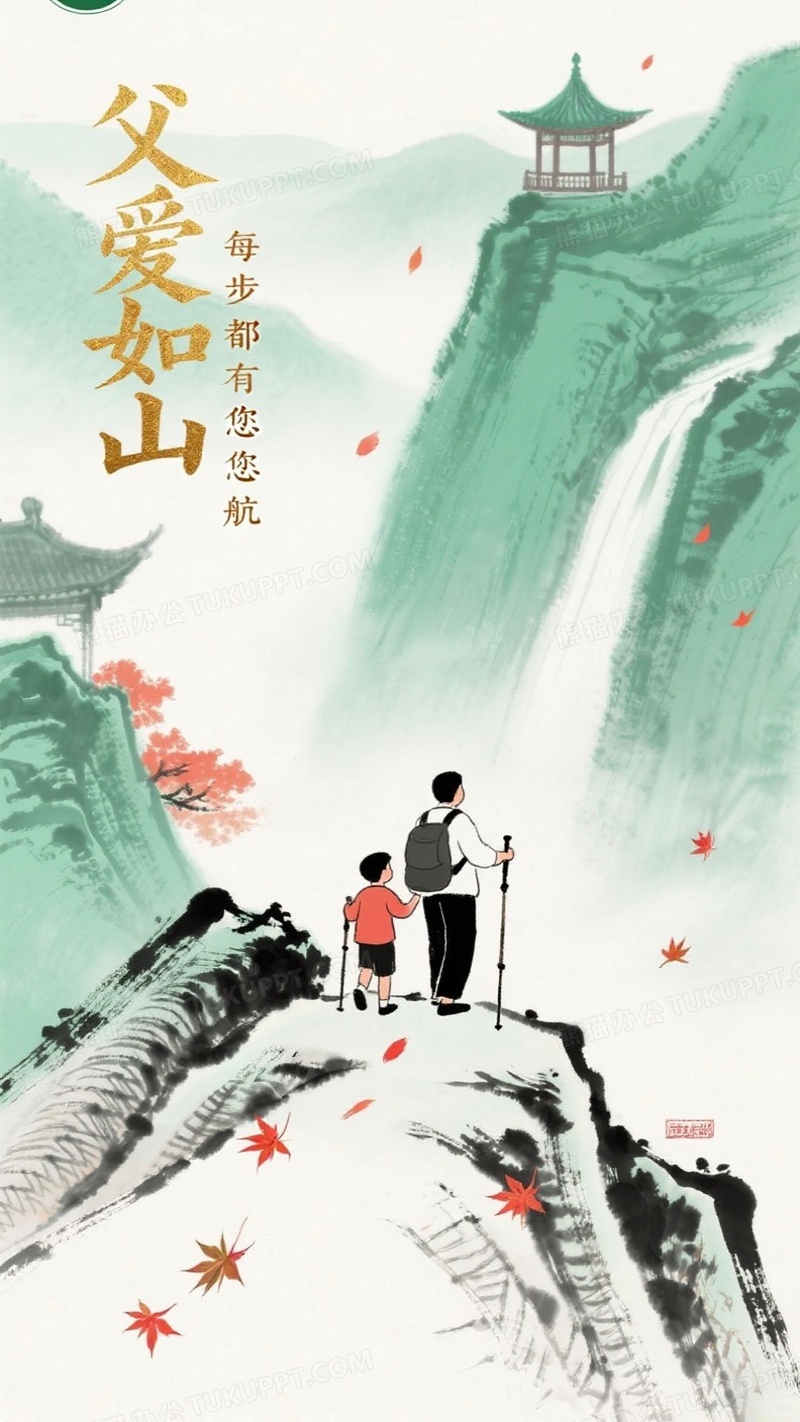 本作品内容为国风水墨父子登山画面, 格式为 jpg, 大小1 MB, 图片尺寸为936 x 1664, 源文件无水印, 欢迎使用熊猫办公。 如认为平台内容涉嫌侵权,可通过邮件:tousu@tukuppt.com提出书面通知,我们将及时处理。