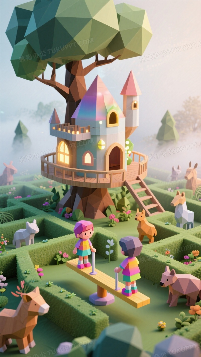 本作品内容为低多边形3D插画几何化设计的树屋城堡搭配发光跷跷板, 格式为 jpg, 大小1 MB, 图片尺寸为936 x 1664, 源文件无水印, 欢迎使用熊猫办公。 如认为平台内容涉嫌侵权,可通过邮件:tousu@tukuppt.com提出书面通知,我们将及时处理。