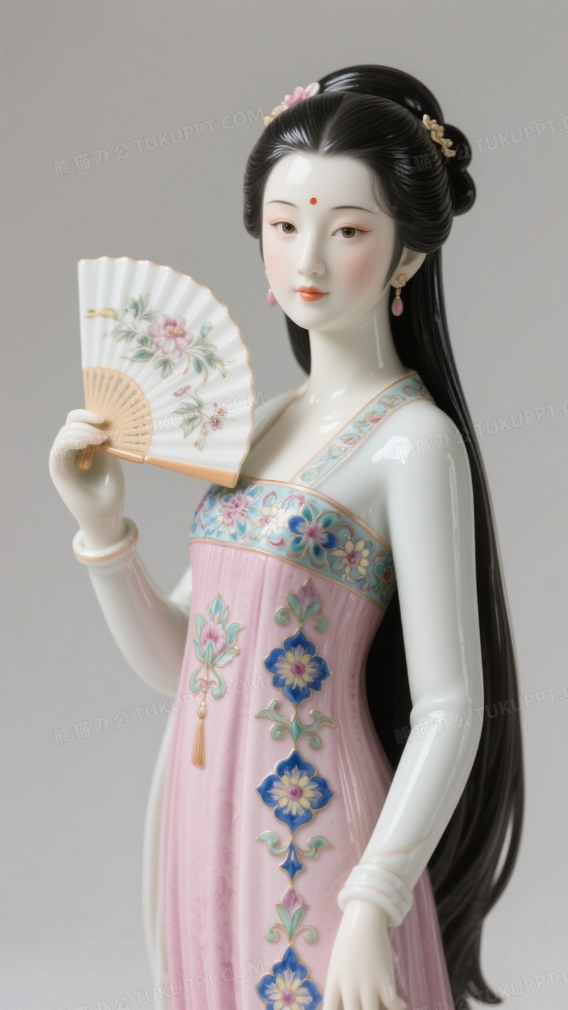 本作品内容为以粉彩工艺精心塑造一尊景德镇陶瓷的古代少女, 格式为 jpg, 大小1 MB, 图片尺寸为936 x 1664, 源文件无水印, 欢迎使用熊猫办公。 如认为平台内容涉嫌侵权,可通过邮件:tousu@tukuppt.com提出书面通知,我们将及时处理。