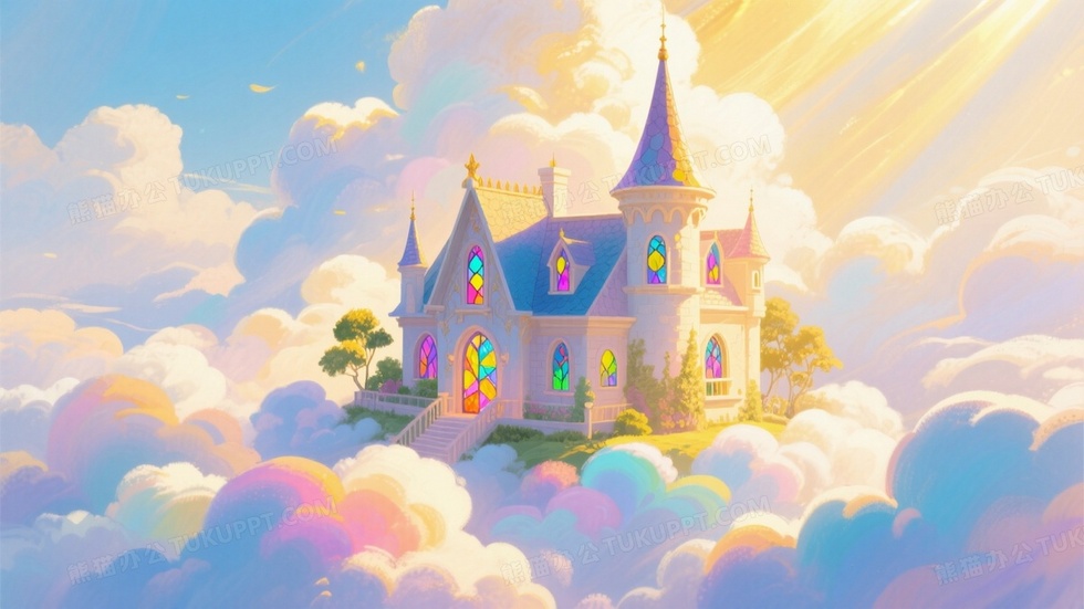 本作品内容为梦幻插画风格的别墅童话城堡般的别墅建在云端之上, 格式为 jpg, 大小1 MB, 图片尺寸为1664 x 936, 源文件无水印, 欢迎使用熊猫办公。 如认为平台内容涉嫌侵权,可通过邮件:tousu@tukuppt.com提出书面通知,我们将及时处理。