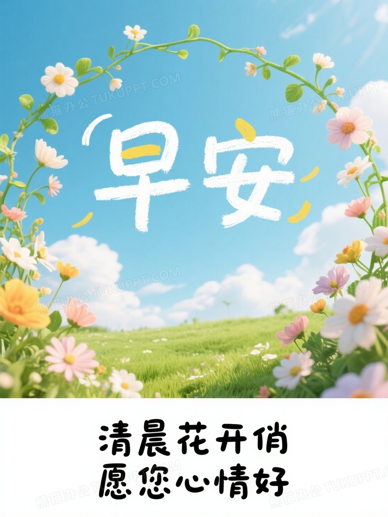 本作品内容为自然清新风格的早安海报, 格式为 jpg, 大小1 MB, 图片尺寸为1104 x 1472, 源文件无水印, 欢迎使用熊猫办公。 如认为平台内容涉嫌侵权,可通过邮件:tousu@tukuppt.com提出书面通知,我们将及时处理。