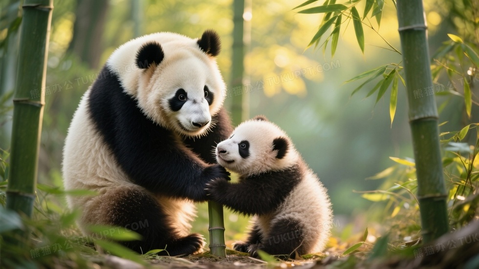 本作品内容为高清写实风画面一对可爱的小熊猫母子在翠绿竹林里互动, 格式为 jpg, 大小1 MB, 图片尺寸为1664 x 936, 源文件无水印, 欢迎使用熊猫办公。 如认为平台内容涉嫌侵权,可通过邮件:tousu@tukuppt.com提出书面通知,我们将及时处理。
