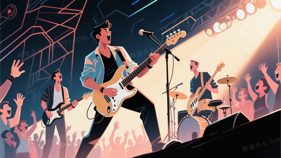 本作品内容为好看的乐队表演插画吉他手激情演奏, 格式为 jpg, 大小1 MB, 图片尺寸为1664 x 936, 源文件无水印, 欢迎使用熊猫办公。 如认为平台内容涉嫌侵权,可通过邮件:tousu@tukuppt.com提出书面通知,我们将及时处理。