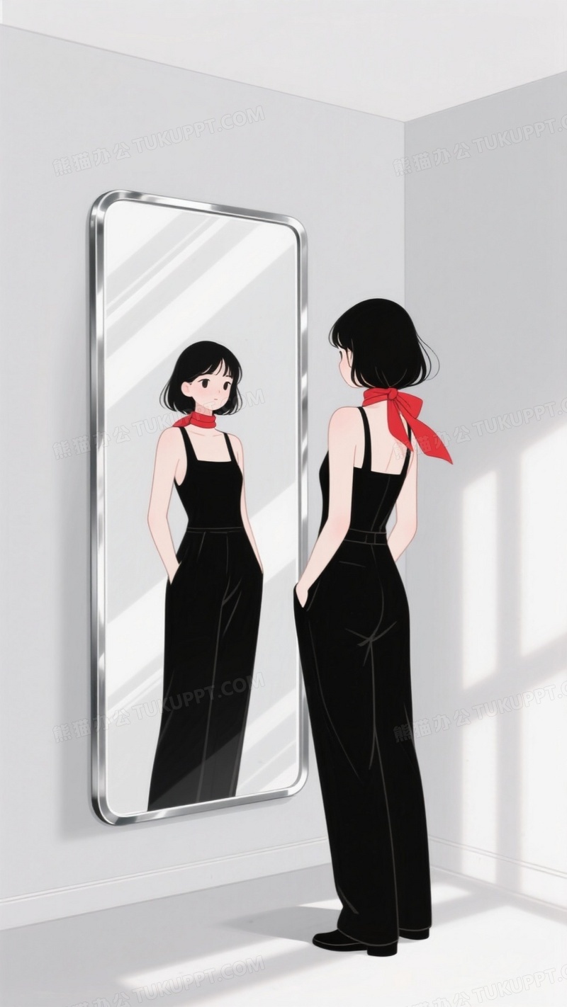 本作品内容为简约卡通插画女孩穿黑色连身裤配红色丝巾, 格式为 jpg, 大小1 MB, 图片尺寸为936 x 1664, 源文件无水印, 欢迎使用熊猫办公。 如认为平台内容涉嫌侵权,可通过邮件:tousu@tukuppt.com提出书面通知,我们将及时处理。