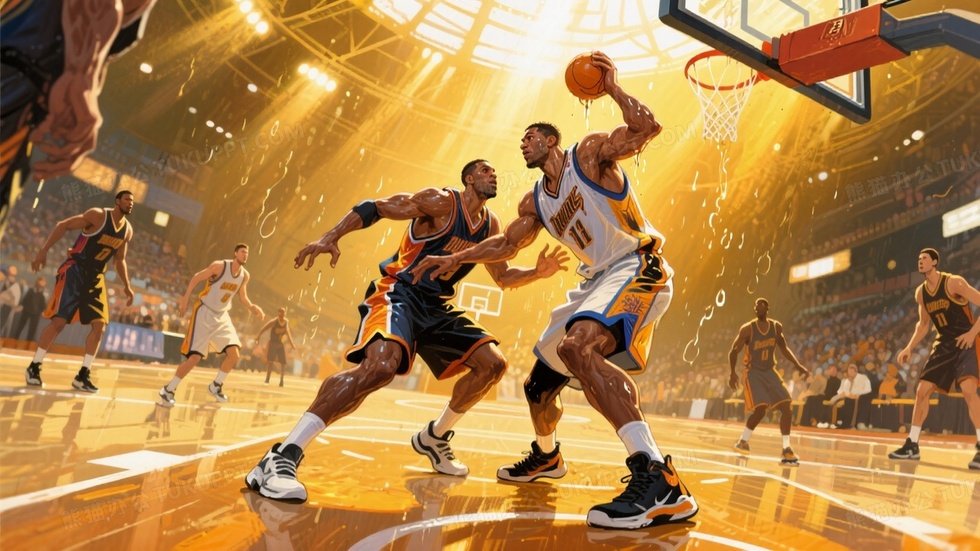 本作品内容为高清篮球比赛插画球员身着酷炫球服在球场上激烈对抗, 格式为 jpg, 大小1 MB, 图片尺寸为1664 x 936, 源文件无水印, 欢迎使用熊猫办公。 如认为平台内容涉嫌侵权,可通过邮件:tousu@tukuppt.com提出书面通知,我们将及时处理。