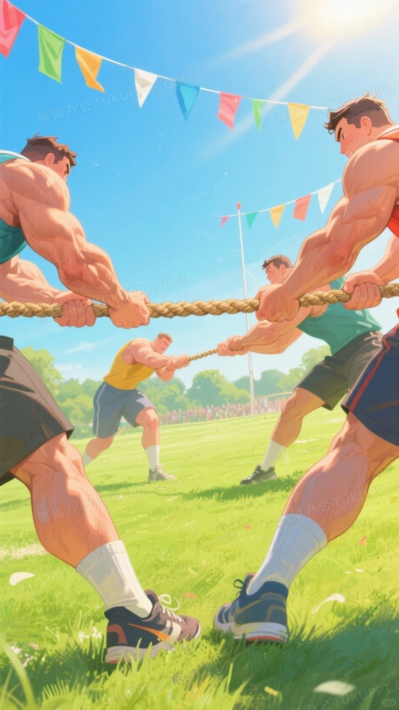 本作品内容为高清的拔河比赛插画两队选手脚蹬地面奋力拉扯粗麻绳, 格式为 jpg, 大小1 MB, 图片尺寸为936 x 1664, 源文件无水印, 欢迎使用熊猫办公。 如认为平台内容涉嫌侵权,可通过邮件:tousu@tukuppt.com提出书面通知,我们将及时处理。