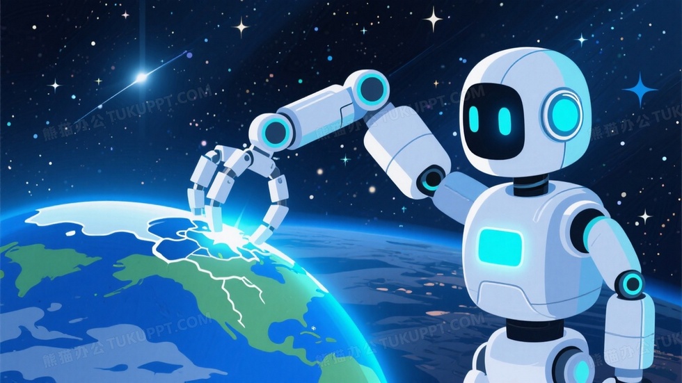 本作品内容为公益卡通插画机器人在太空中用机械臂修复地球的臭氧层, 格式为 jpg, 大小1 MB, 图片尺寸为1664 x 936, 源文件无水印, 欢迎使用熊猫办公。 如认为平台内容涉嫌侵权,可通过邮件:tousu@tukuppt.com提出书面通知,我们将及时处理。