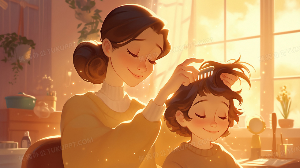 本作品内容为妈妈卧室帮小男孩梳头卡通插画, 格式为 jpg, 大小2 MB, 图片尺寸为2912 x 1632, 源文件无水印, 欢迎使用熊猫办公。 如认为平台内容涉嫌侵权,可通过邮件:tousu@tukuppt.com提出书面通知,我们将及时处理。