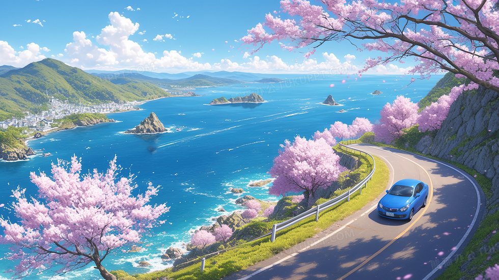 本作品内容为春天自然风景公路树花草海边插画, 格式为 jpg, 大小4 MB, 图片尺寸为2912 x 1632, 源文件无水印, 欢迎使用熊猫办公。 如认为平台内容涉嫌侵权,可通过邮件:tousu@tukuppt.com提出书面通知,我们将及时处理。