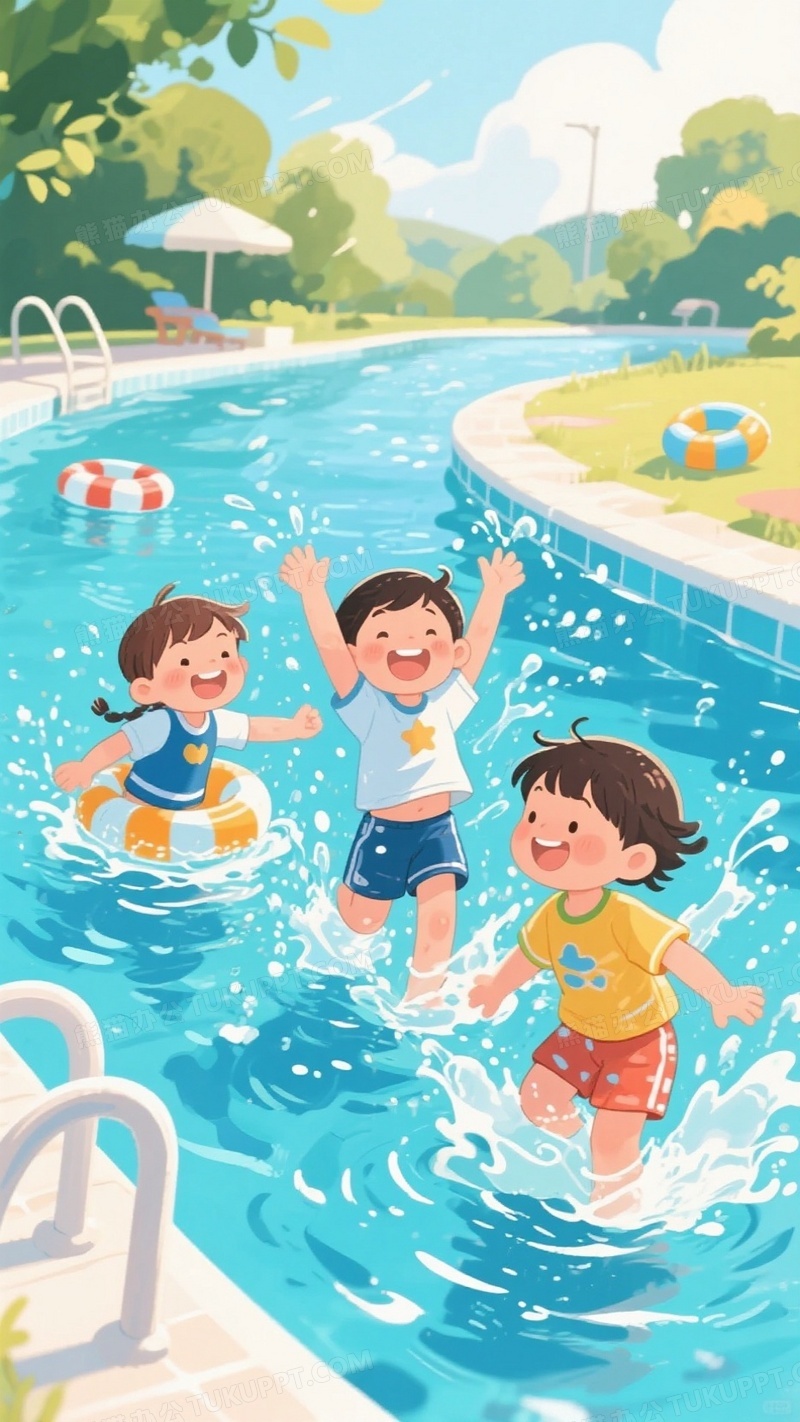 本作品内容为游泳池三个可爱的小孩穿着短袖短裤开心在河里游泳, 格式为 jpg, 大小1 MB, 图片尺寸为936 x 1664, 源文件无水印, 欢迎使用熊猫办公。 如认为平台内容涉嫌侵权,可通过邮件:tousu@tukuppt.com提出书面通知,我们将及时处理。
