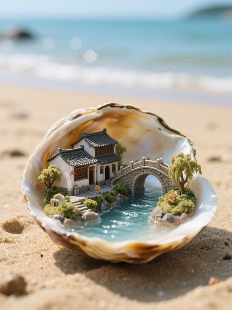 本作品内容为在海边沙滩上一个打开的贝壳里面有江南水乡小桥流水, 格式为 jpg, 大小1 MB, 图片尺寸为1104 x 1472, 源文件无水印, 欢迎使用熊猫办公。 如认为平台内容涉嫌侵权,可通过邮件:tousu@tukuppt.com提出书面通知,我们将及时处理。