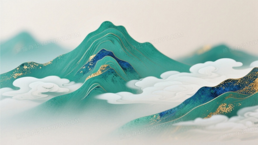 本作品内容为青绿山水主题图山脉是高饱和度色彩, 格式为 jpg, 大小1 MB, 图片尺寸为1664 x 936, 作品中背景图片无需修改, 源文件无水印,可以直接使用, 欢迎使用熊猫办公。 如认为平台内容涉嫌侵权,可通过邮件:tousu@tukuppt.com提出书面通知,我们将及时处理。